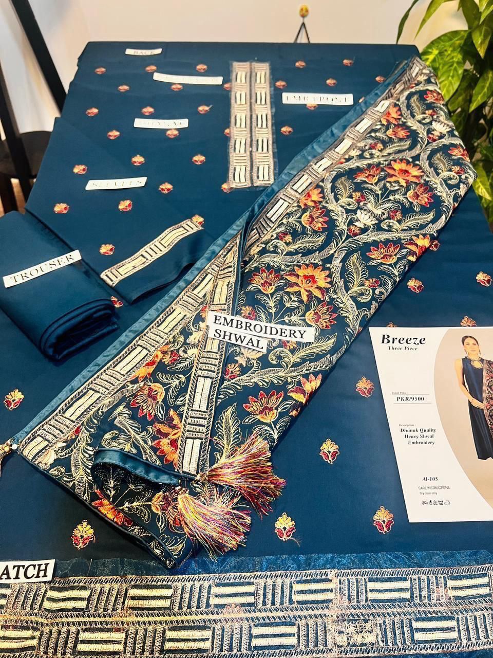BREEZE Luxury Embroidered Dhanak 3-Pc Suit