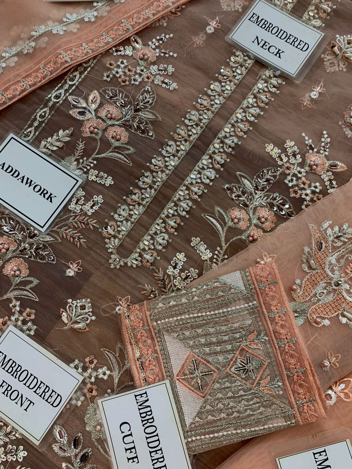 HEAVY EMBROIDERED ORGANZA FRONT EMBELLISHED WITH ADDA WORK WITH HEAVY EMBROIDERED DAMAN PATCH EMBELLISHED WITH HANDWORK