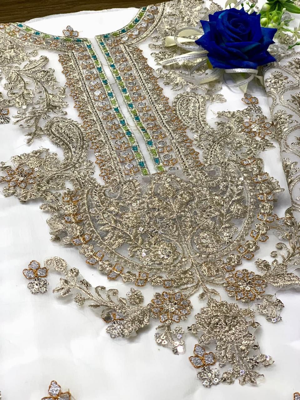 bumber chiffon fully heavy embroidered spangle work front with fully heavy embroidered spangle work daman boarder with cut work with fancy tulses stich