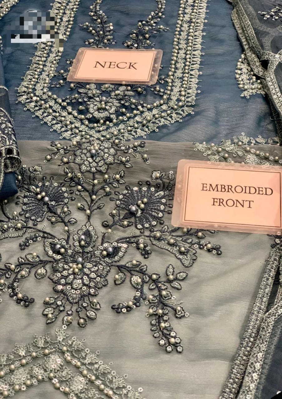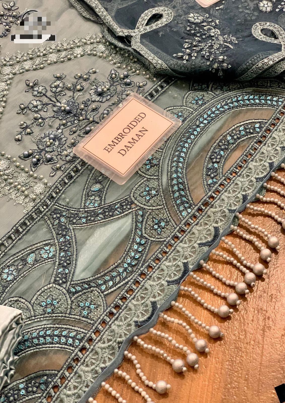 Chiffon fully heavy alternate embroidered spangle work front with fully hand embellishment adda work with heavy embroidered spangle work daman border with fully cut work with hand emblishment lace