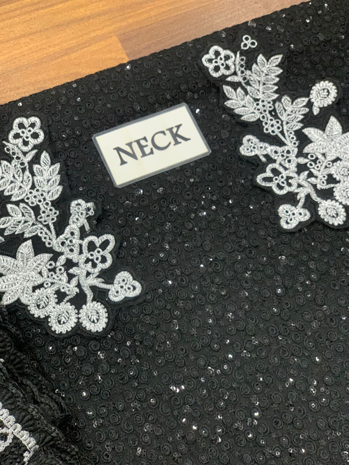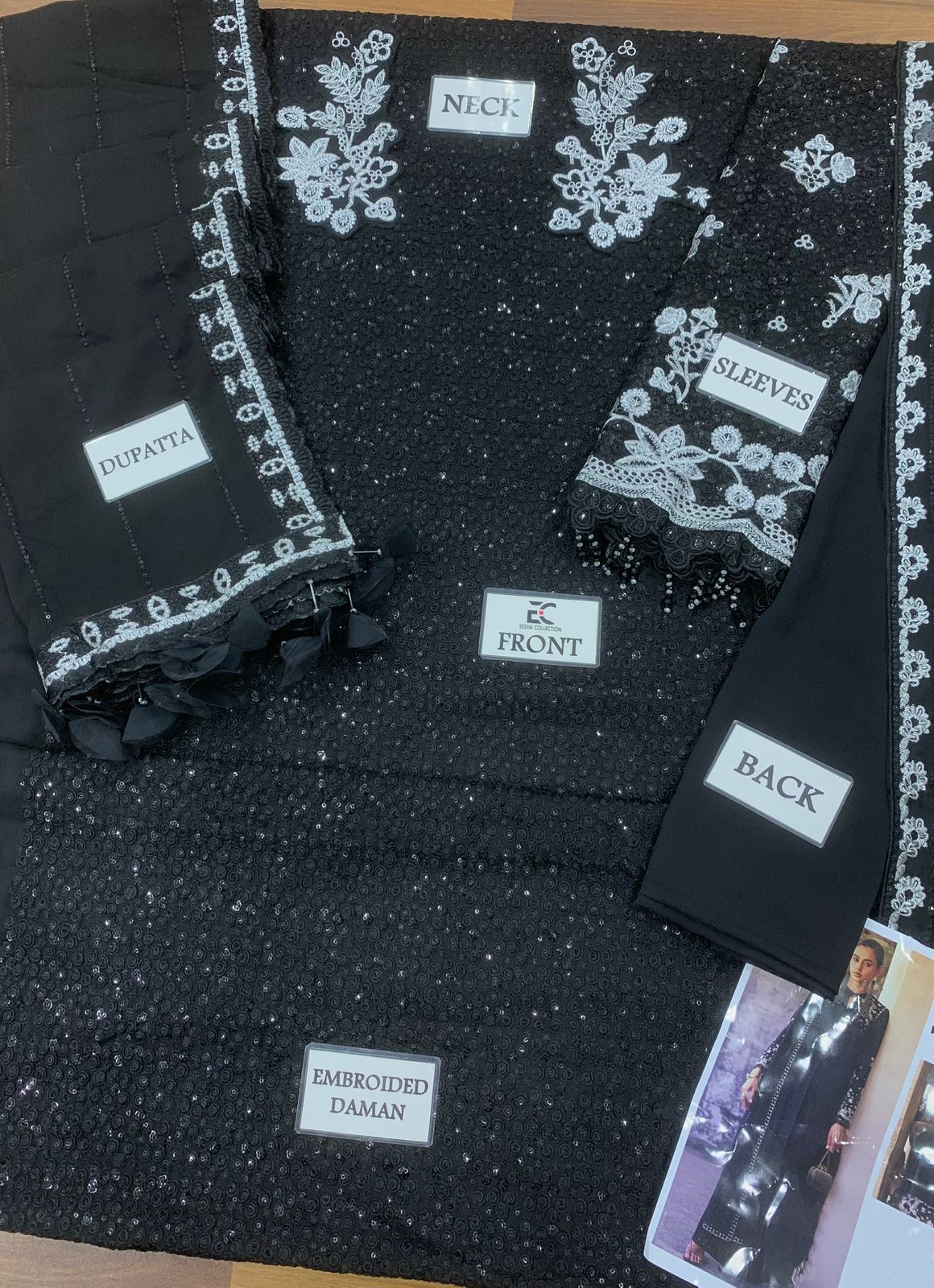 chiffon fully heavy embroidered spengle work with complete sequence work with heavy embroidered spengle work neckline with heavy embroidered chawl lace feet length